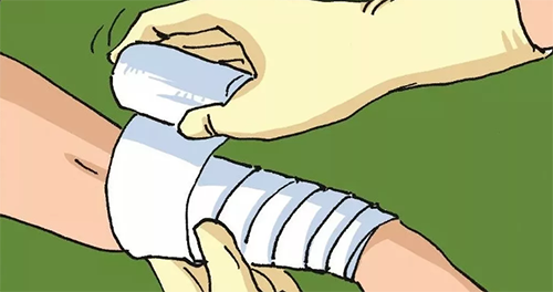 绷带有纱布绷带、弹性绷带等,一般使用的多为纱布绷带,正确的使用方法是: